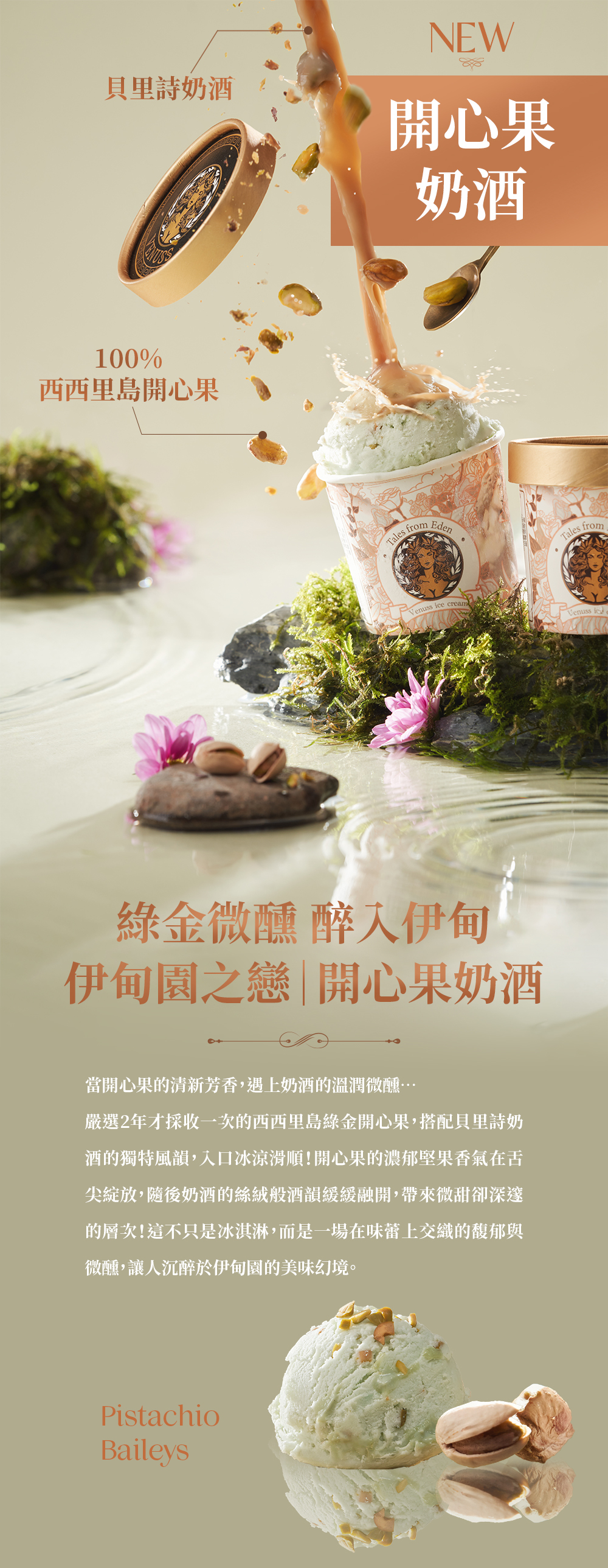 精選開心果的濃郁香氣,遇上細緻貝禮詩的絲滑口感,層層堆疊卻不甜膩,打造恰到好處的大人系風味。